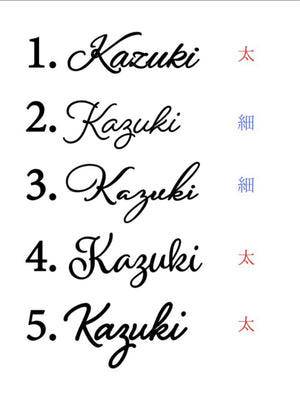 ※サイズについては基準となる名前と一緒にお問い合わせください。