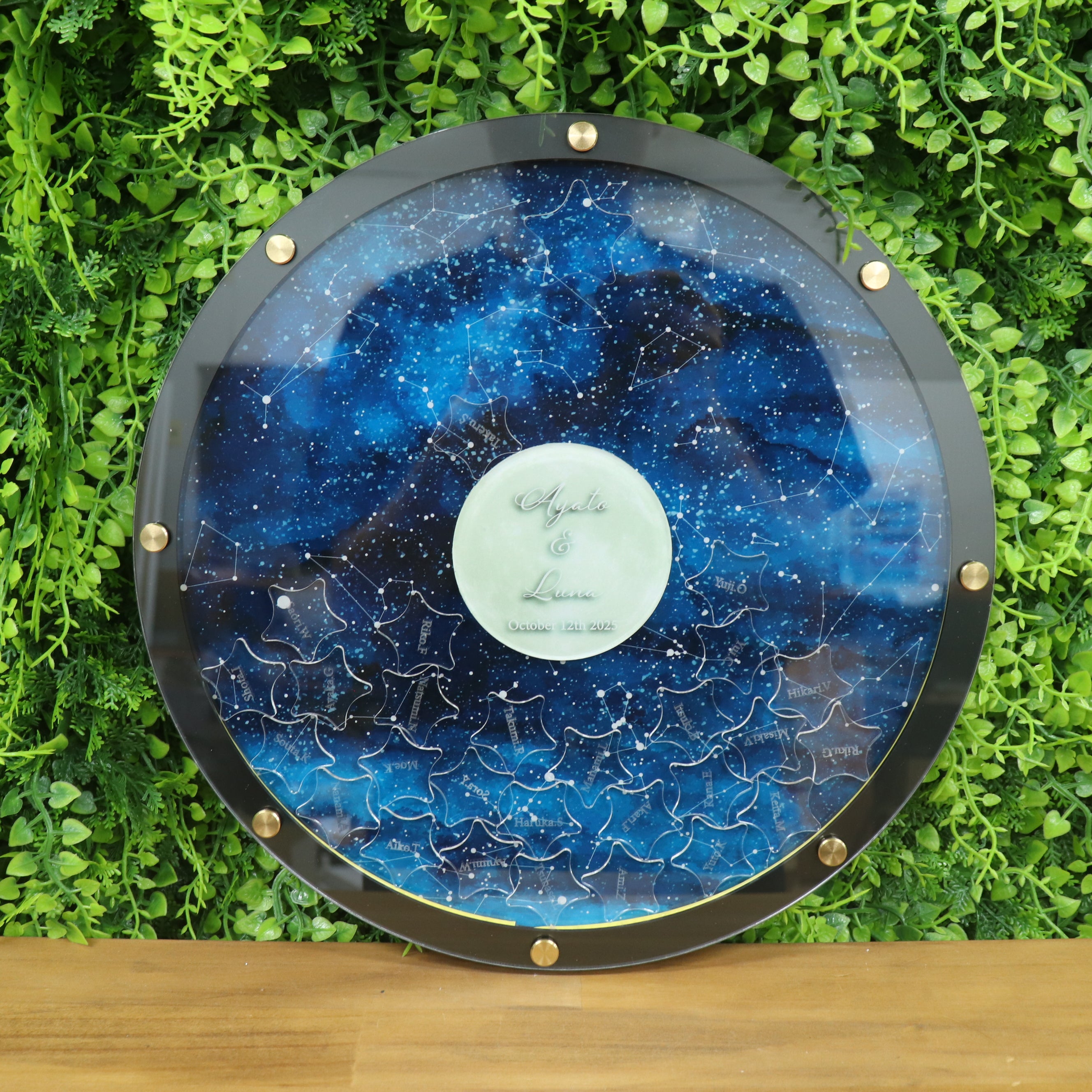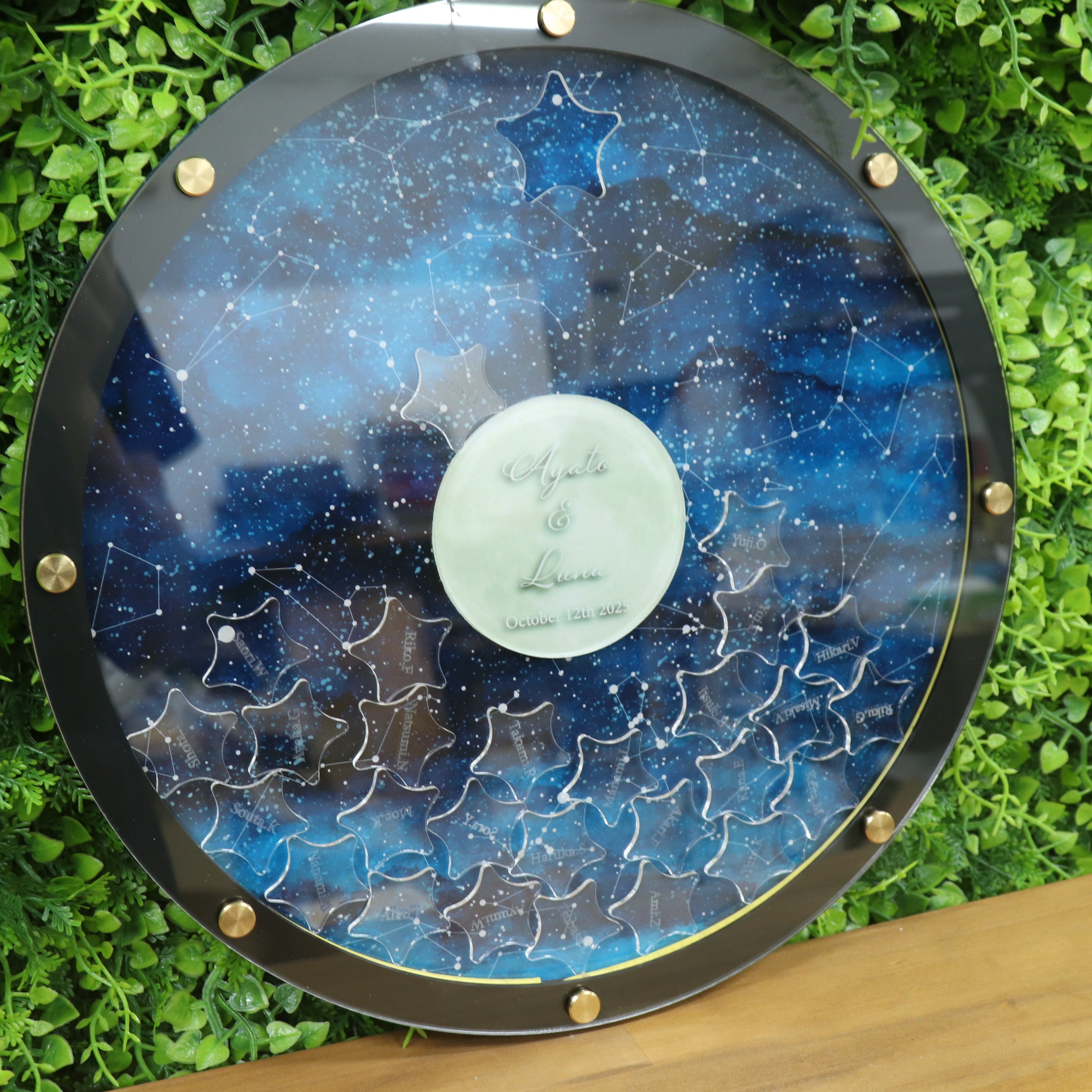 ゲストピースは星をモチーフにし、クリアアクリルに名前を刻印します。