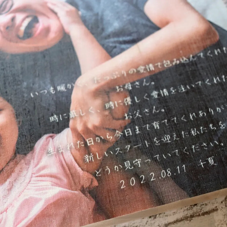 子育て感謝状 温かみのある木製フォトプリント