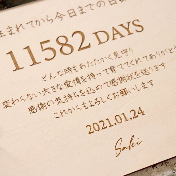 【折り畳める木製子育て感謝状】オリジナル文字入れ無料