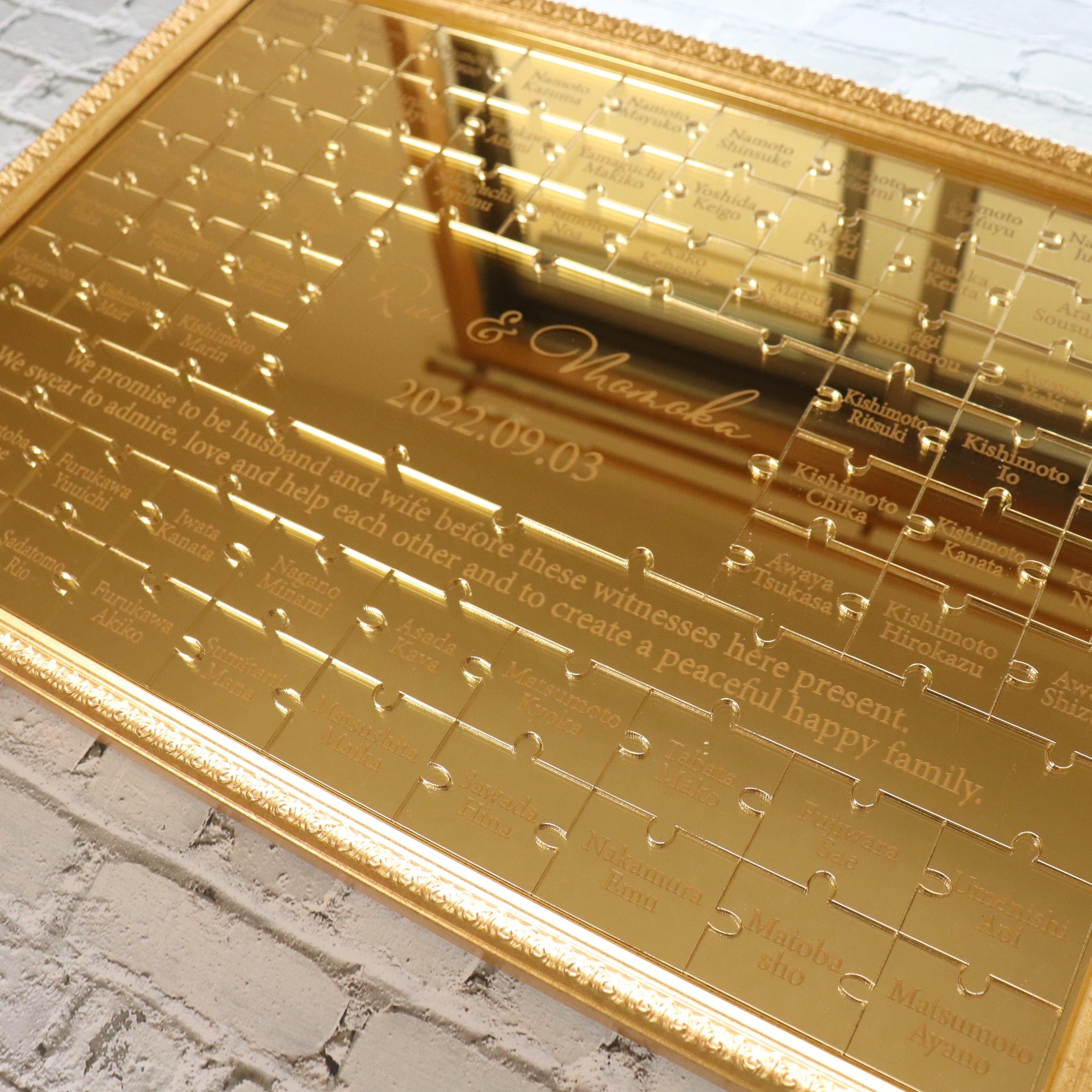 【ゲスト名入れ無料 到着後でもゲストピース無料で修正します】ミラーゴールドパズル 結婚証明書